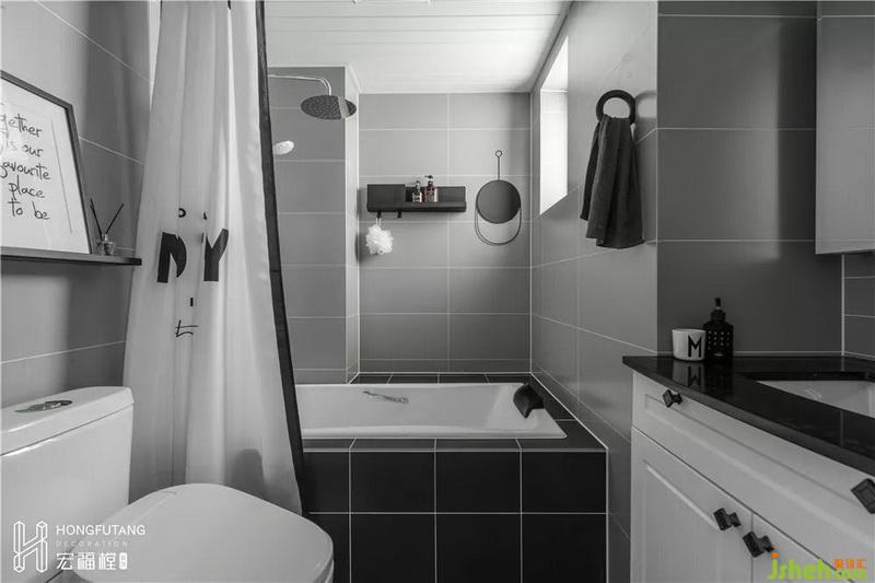 以灰色為主的衛(wèi)生間,從視覺上更加有質(zhì)感,從日常使用來說,耐臟,便于清潔;在主衛(wèi)改造中,墻體向外側(cè)移動0.48m,預(yù)留出洗臉盆位置,使得整個空間更加方正,利用排氣管道的位置在浴缸旁邊做了置物臺,節(jié)約空間的同時,也達到遮蔽的效果,空間展示效果干凈整潔。