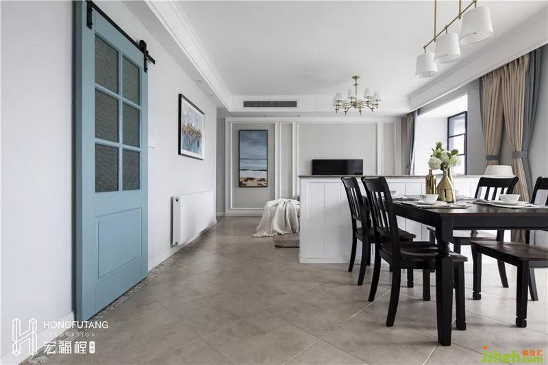 半高的隔墻,從功能性上講,一是可作為島臺(tái)使用,用做物品陳列和餐點(diǎn)放置;二是使餐桌靠在隔墻上面節(jié)約空間。從美學(xué)上講可以遮住沙發(fā)背后不美觀的部分,可謂一舉三得。