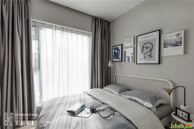 次臥風(fēng)格偏現(xiàn)代輕工業(yè),以灰白色為主調(diào),選用鐵質(zhì)床具,從視覺(jué)上釋放床具對(duì)空間的占用,小空間更需要這樣簡(jiǎn)潔明朗。