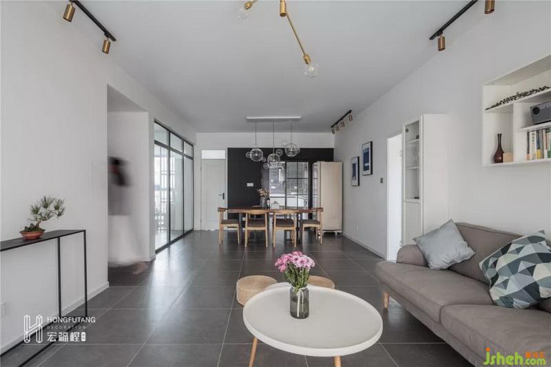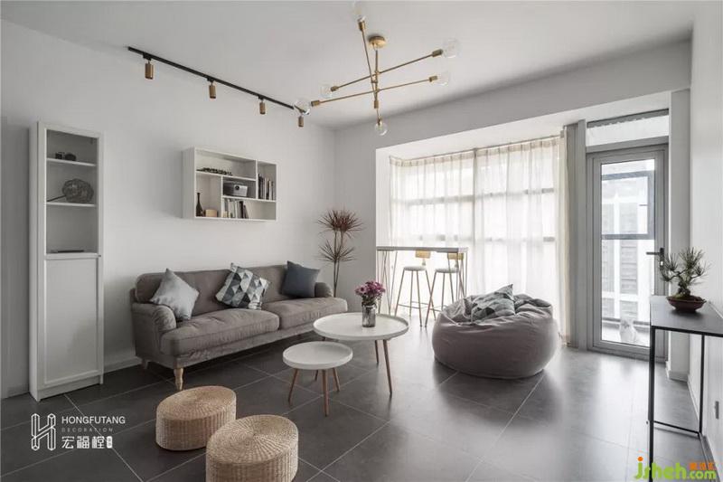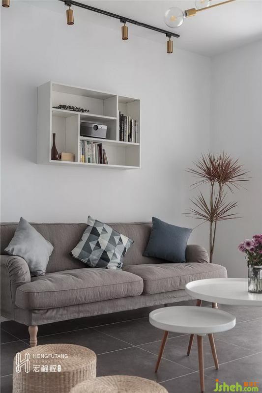 客廳選用北歐風格,彰顯北歐風格的實用簡單,并沒有選用過多的家具和擺設(shè)。