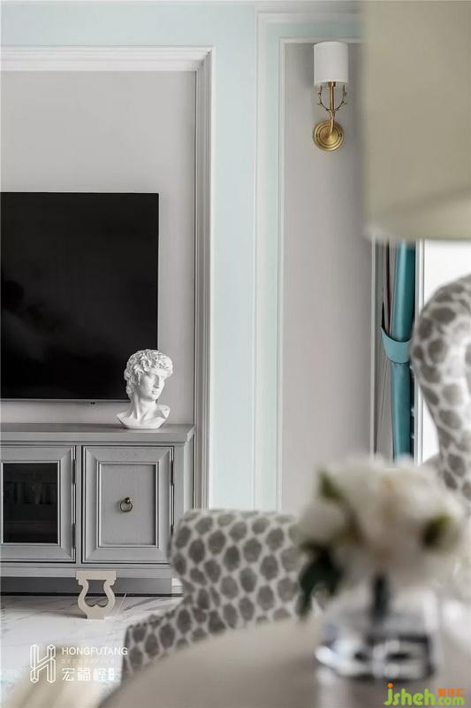 整個(gè)空間依靠右側(cè)采光,所以在燈光考慮上,客廳、餐廳各一個(gè)主燈,客廳邊幾選用落地?zé)?,可在此處隨手閱讀書(shū)籍、雜志,客廳電視墻一組壁燈更多作為裝飾使用;裝飾類(lèi)擺件大多選用金屬色,金屬色擺件貴氣優(yōu)雅,符合法式浪漫輕奢風(fēng)格,也是業(yè)主需求的體現(xiàn)。