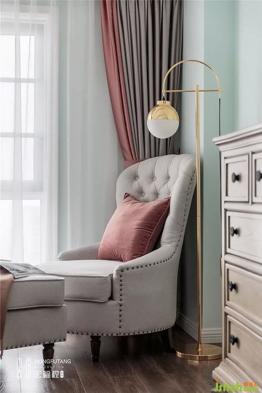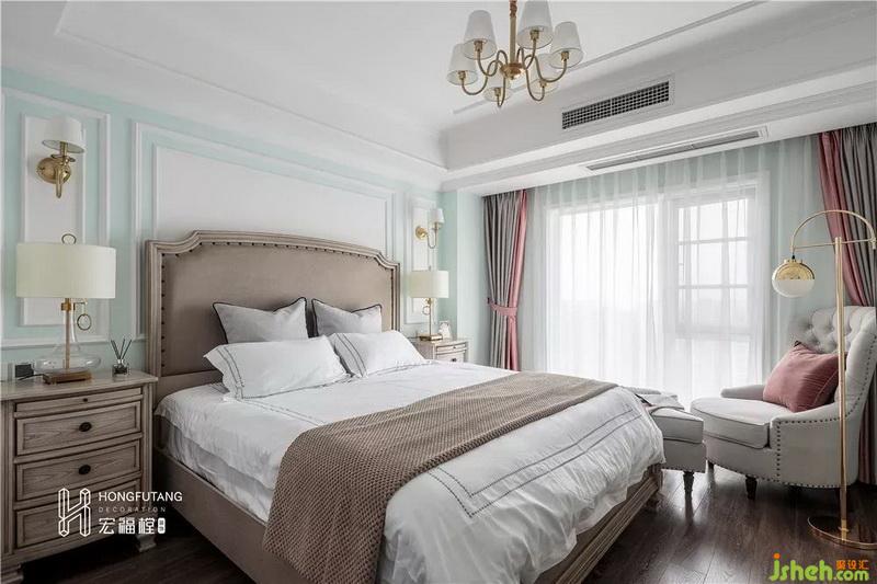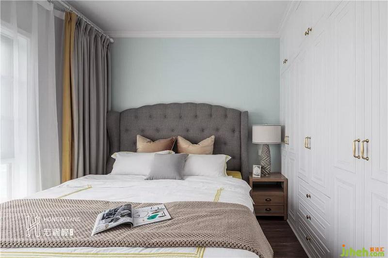 選用棕色家具,調(diào)和淡色空間,使得空間層次感更強,軟包床頭,符合人體舒適度;為了增加收納面積,所選用的床頭柜、斗柜都有大量收納的功能;床邊擺放沙發(fā)凳,可作為小憩和睡前閱讀的空間。