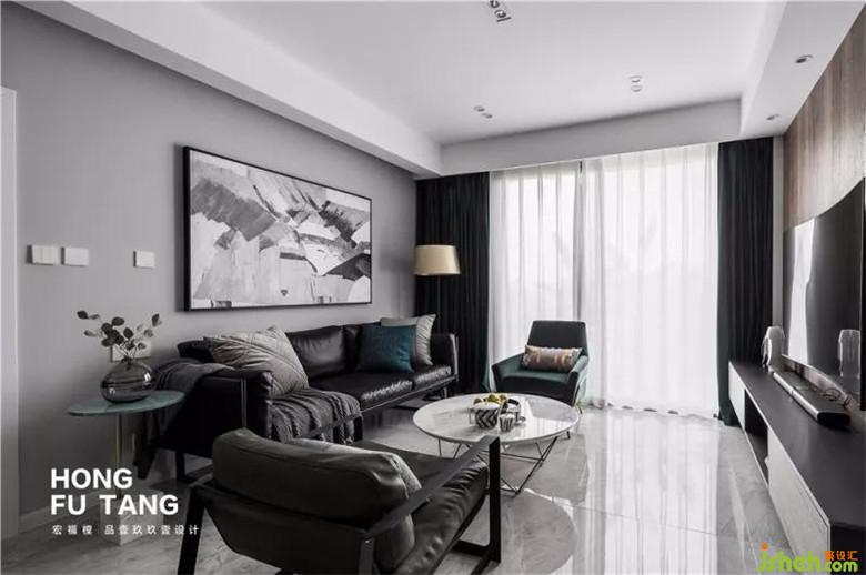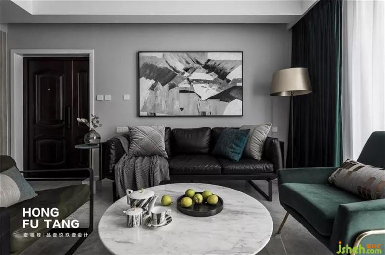 客廳窗簾和部分軟裝選擇墨綠色,作為家居中最親近自然的色彩,墨綠色來自茂密森林,不論外界如何炎熱,這里總是一片清涼,總是幽靜神秘。搭配空黑白灰,空間沉靜悠遠(yuǎn)。