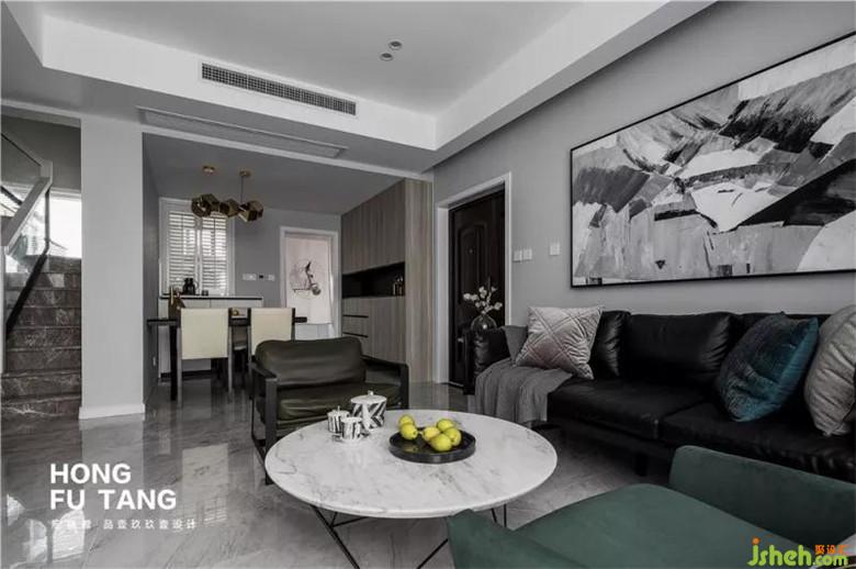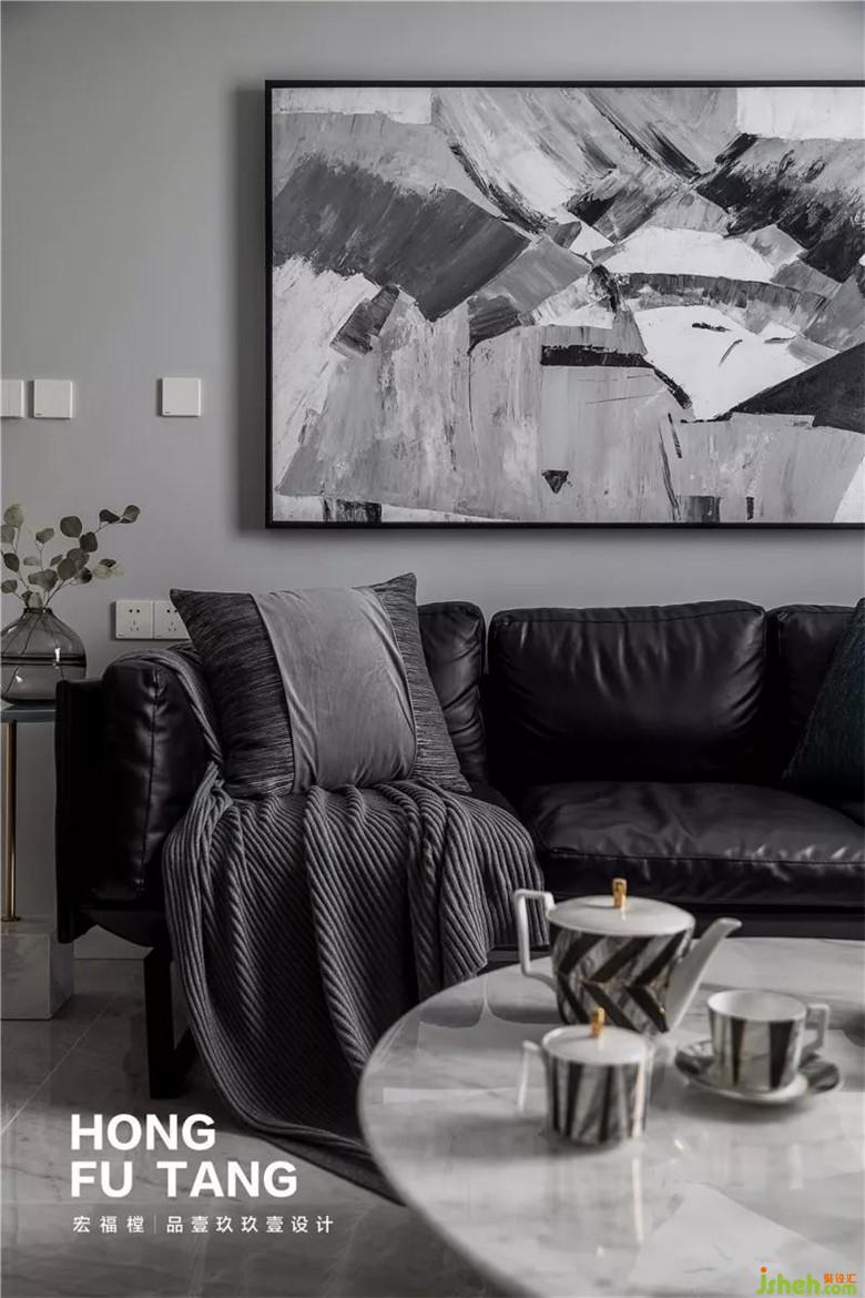 茶幾選擇大理石材質(zhì),自然黑白紋理與整體空間黑白灰基調(diào)搭配相得益彰。