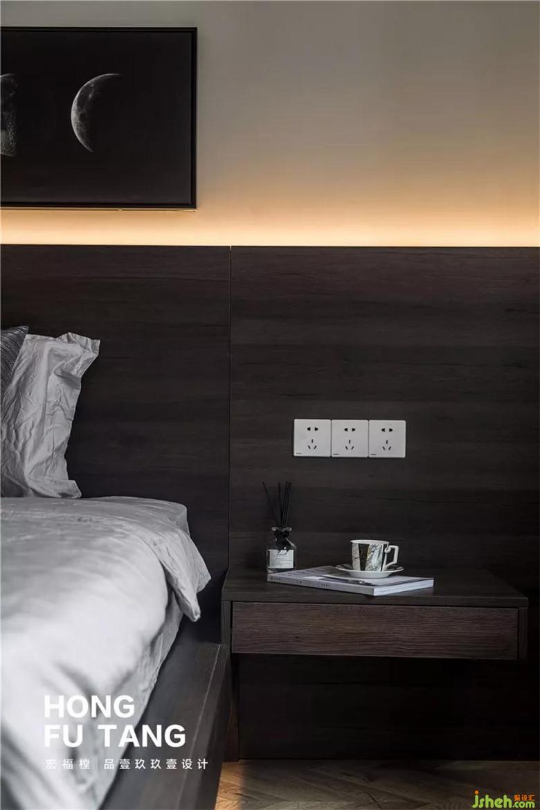 業(yè)主注重臥室的舒適感,從床到靠背再到床頭柜都選擇的定制,家具肌理明顯、線條纖細(xì),也是符合整個(gè)空間的現(xiàn)代感;由于空間冷色調(diào),設(shè)計(jì)師在兩處分別做了輔助光源,當(dāng)溫暖的燈光與冷色家具融合,提高了層次感和幾何空間感,科學(xué)的光源設(shè)計(jì)也避免了刺眼。