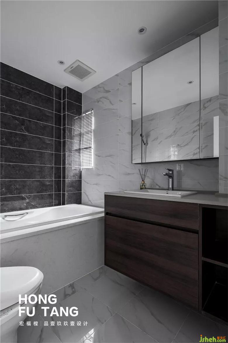 衛(wèi)生間色調(diào)整體色調(diào)一致,通過(guò)黑與白的搭配,帶來(lái)鮮明利落的視覺(jué)感受。