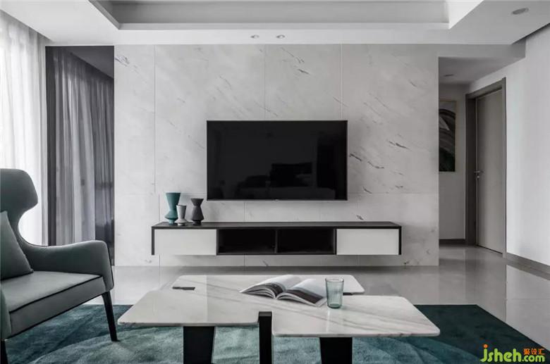 在電視墻的設(shè)計上,考慮到右側(cè)為通道空間,左側(cè)位置按比例選用黑色鏡面,中間選用白色大理石作為背景,黑白結(jié)合平衡了空間重心,也避免大面積白色的空洞;客廳空間采光優(yōu)良,選用無主燈設(shè)計,空間更加簡潔。簡約不等于簡單,看似簡單的堆砌和平淡的擺放,都是每一次設(shè)計的延展。