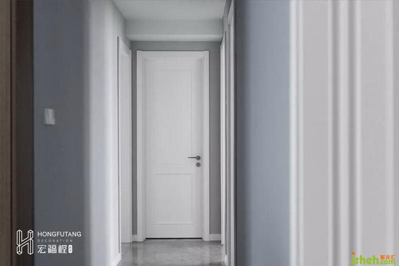 一眼望去客廳走廊,房間門框不加修飾的出現(xiàn),體現(xiàn)空間線條簡潔的形態(tài)。