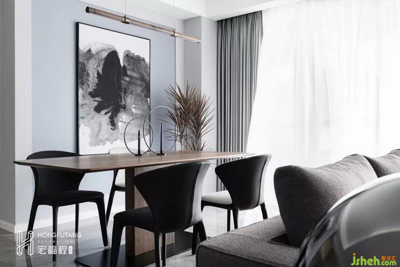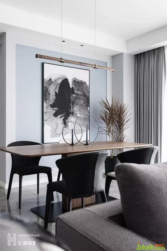 餐廳是團(tuán)圓熱鬧的代表,選用木質(zhì)餐桌將空間氛圍烘托到最高點(diǎn),與客廳元素相呼應(yīng)。木質(zhì)橫向吊燈,滿足了照射范圍,簡潔清爽;以水墨畫豐富餐廳空間。以簡單的物件呈現(xiàn)餐廳的合理搭配。