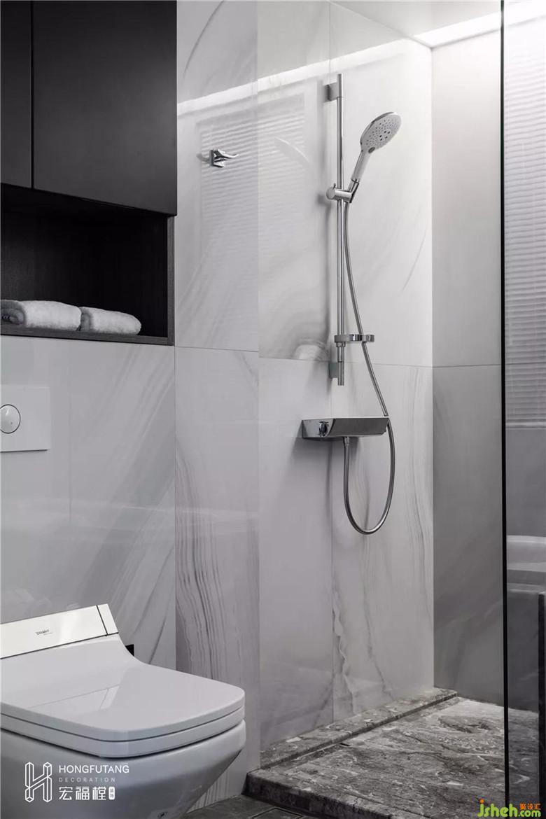 次衛(wèi)在滿足所有使用需求的同時,也巧妙的運用了線條流動感所傳達的舒適性和放空性。從地板到墻面,不規(guī)則的線條傳達著一種尋求質(zhì)感的高品質(zhì)生活理念,即使是衛(wèi)生間也不能錯失任何細(xì)節(jié)提升的機會。