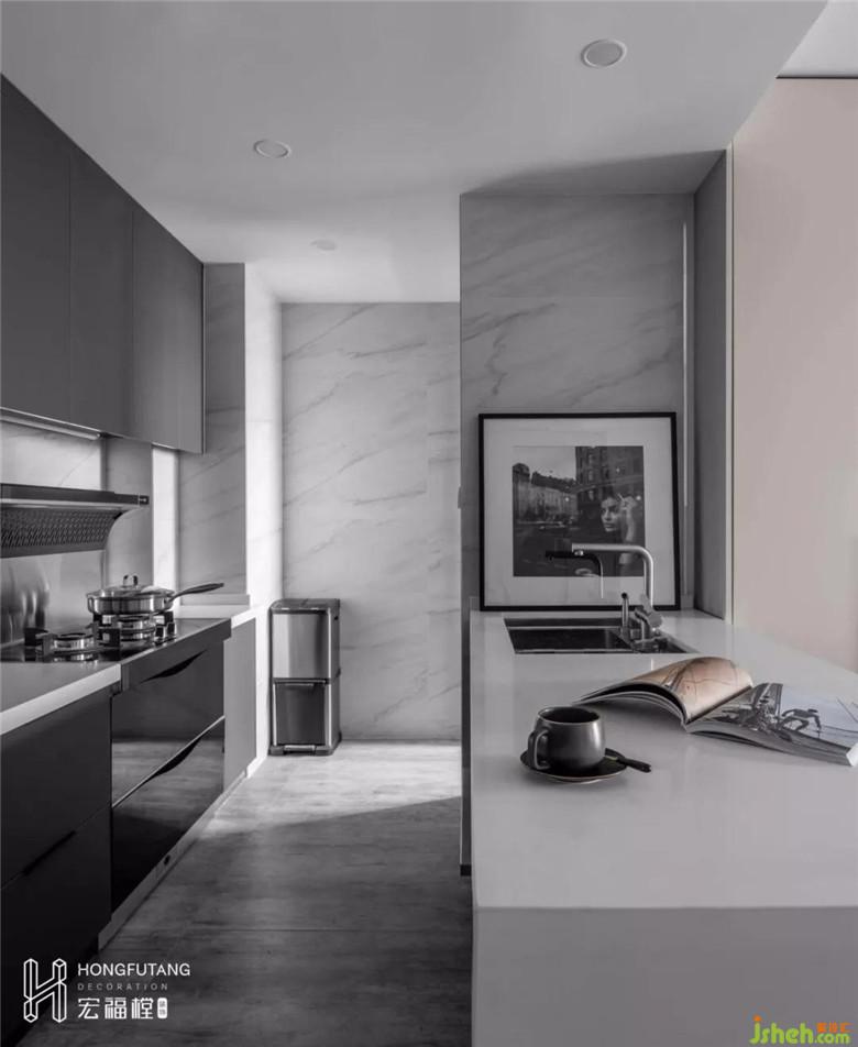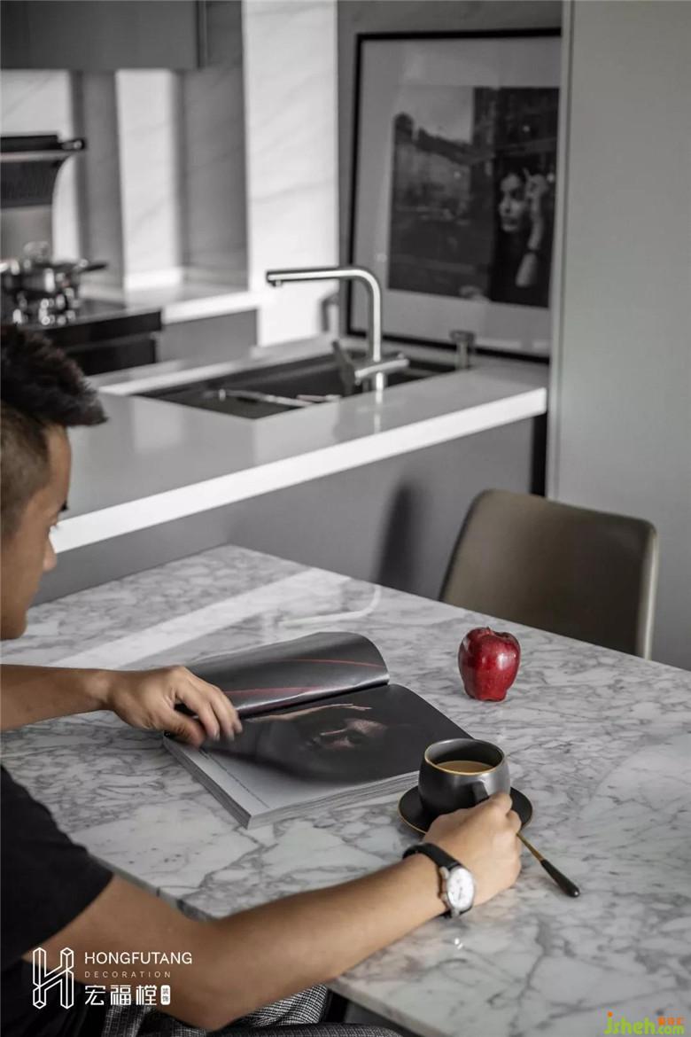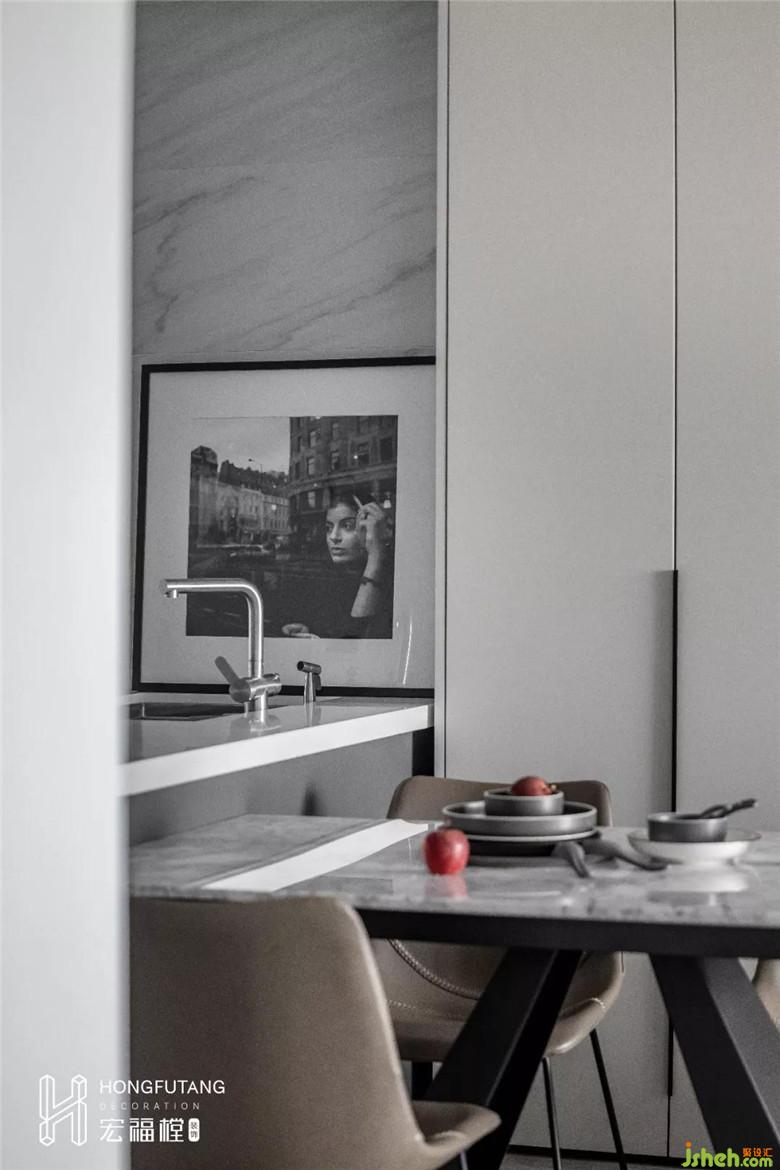 為擴(kuò)大整個空間的視覺效果,這次的廚房我們進(jìn)行了一個開放式的設(shè)計。旨在讓生活空間變得自由且更具有想象力。從材質(zhì)的選擇,到顏色的搭配,都達(dá)到了與整個空間的100%融合,不僅從使用習(xí)慣出發(fā),更是向使用感受做到升華。區(qū)域的明顯分隔,讓每一次呈現(xiàn)的佳肴都變成了值得期待的美好。