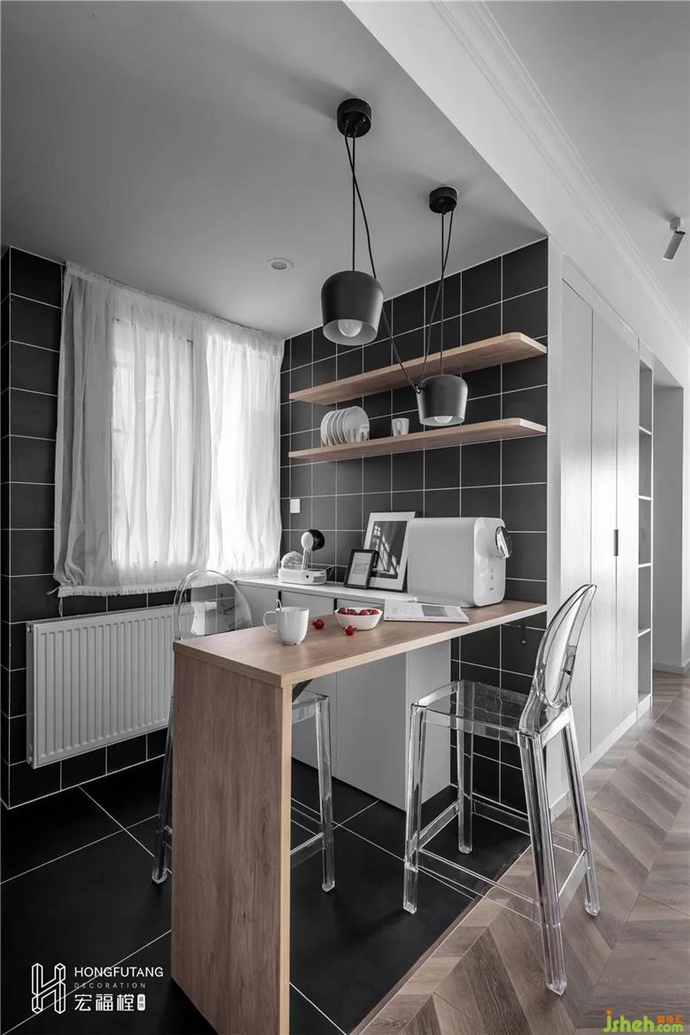 合并后的生活陽臺搖身變成簡易的早餐區(qū)域,在此泡一杯咖啡,烤兩片面包,溫暖的陽光從窗戶透進(jìn)來時(shí),一天的生活在此開始變得美好。