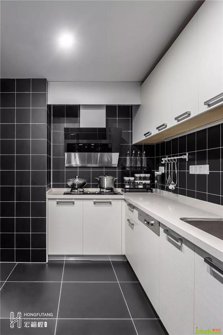 考慮到原廚房空間擁擠封閉,沒有采光和通風(fēng),所以將生活陽臺與之合并,并隔出一個設(shè)備區(qū)放置天然氣表與熱水器。