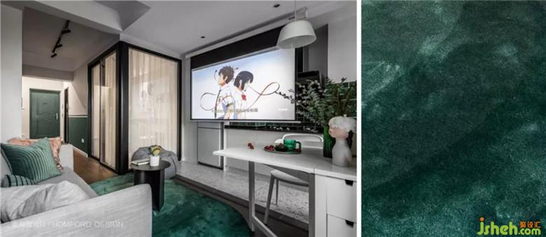 客廳搖身一變,變成了最舒適的區(qū)域。考慮到父母偶爾會(huì)探望,所以選用了實(shí)用性較強(qiáng)的沙發(fā)床。軟軟的布藝+懶人沙發(fā),用手觸及就能感受到溫度的地毯,80寸的投影屏幕,不管是和閨蜜宅在家里還是一個(gè)人獨(dú)處或是與他共度的周末時(shí)光,都一定會(huì)是最享受的時(shí)刻。