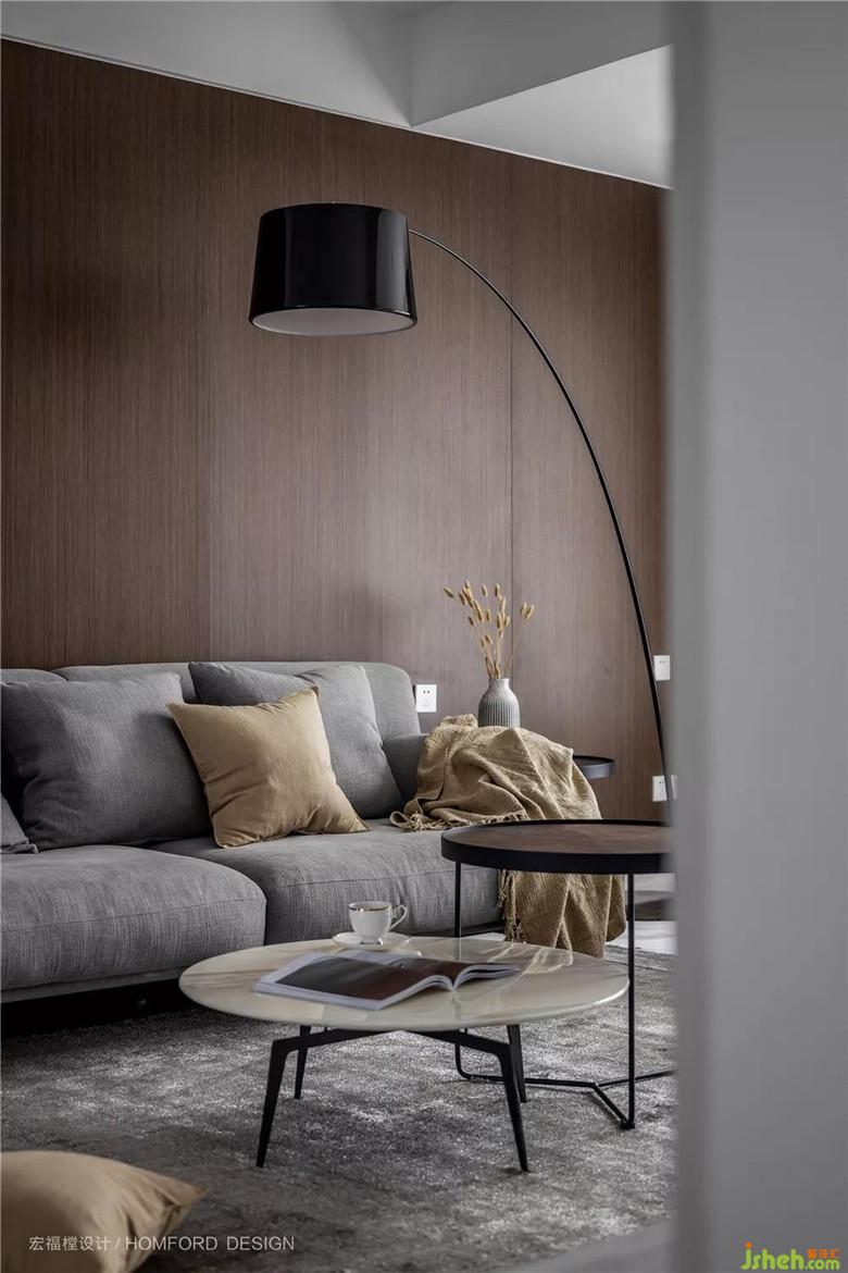 空間整體在豐富的材質搭配及深與淺的色彩對比下,營造出了現(xiàn)代感的寧靜與優(yōu)雅。利用飾面木板整體上墻,金屬元素點綴,更是帶來視覺上的豐富變化。