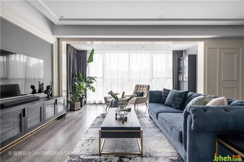 摒棄掉傳統(tǒng)大吊燈,整個客廳采用無主燈設計,在視覺上讓客廳顯得更加開闊。