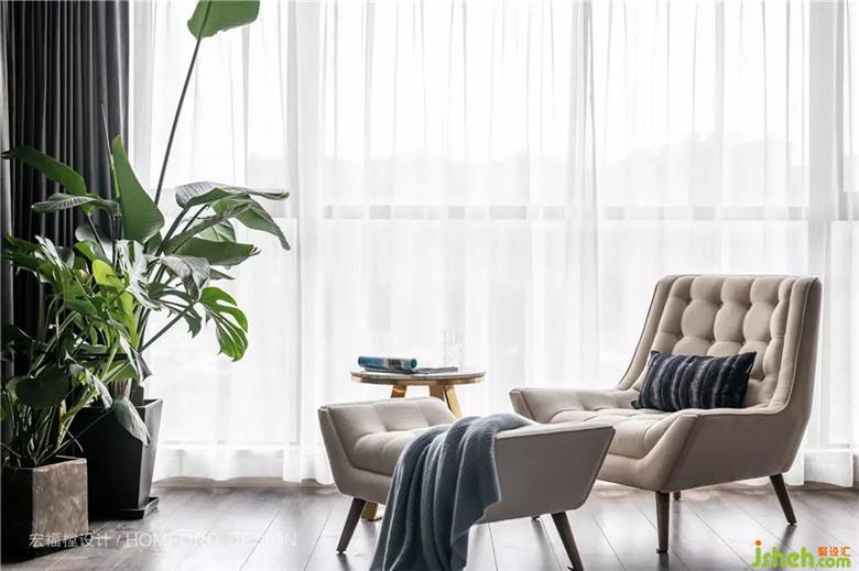 客廳一側的躺椅,優(yōu)雅別致,比利時進口亞麻面料,不僅有著較好的韌性,而且色彩自然,讓整個空間高級感倍增。