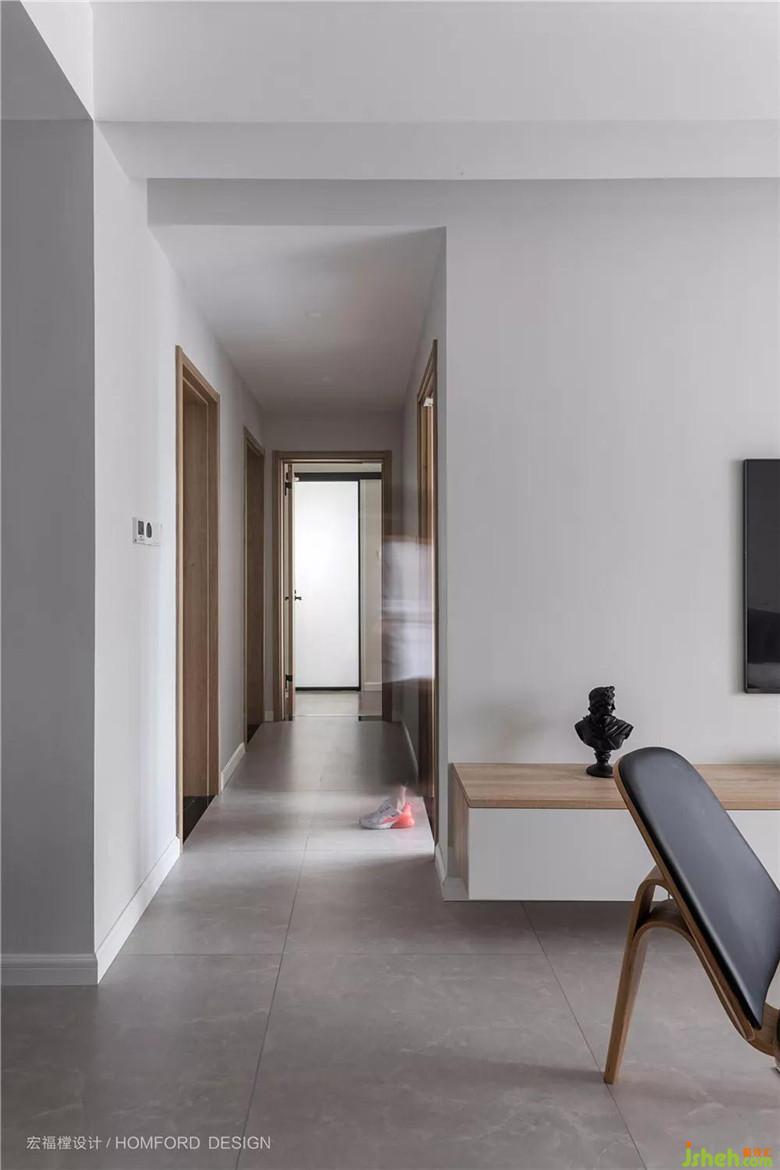 門洞做了相應的移位滿足房間的正常出入動線,平面吊頂平整簡潔,既保持層高,視覺上也更清爽。