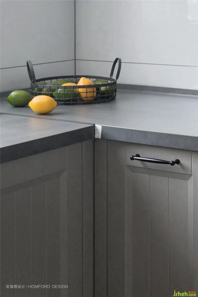 減少不必要的裝飾,外部陽(yáng)光進(jìn)入廚房后,經(jīng)過(guò)白色瓷磚反光效果,使得廚房空間更加敞亮。延續(xù)餐廳配色,以簡(jiǎn)單的實(shí)用性強(qiáng)調(diào)生活的本質(zhì),讓身處于此倍感舒適溫柔。