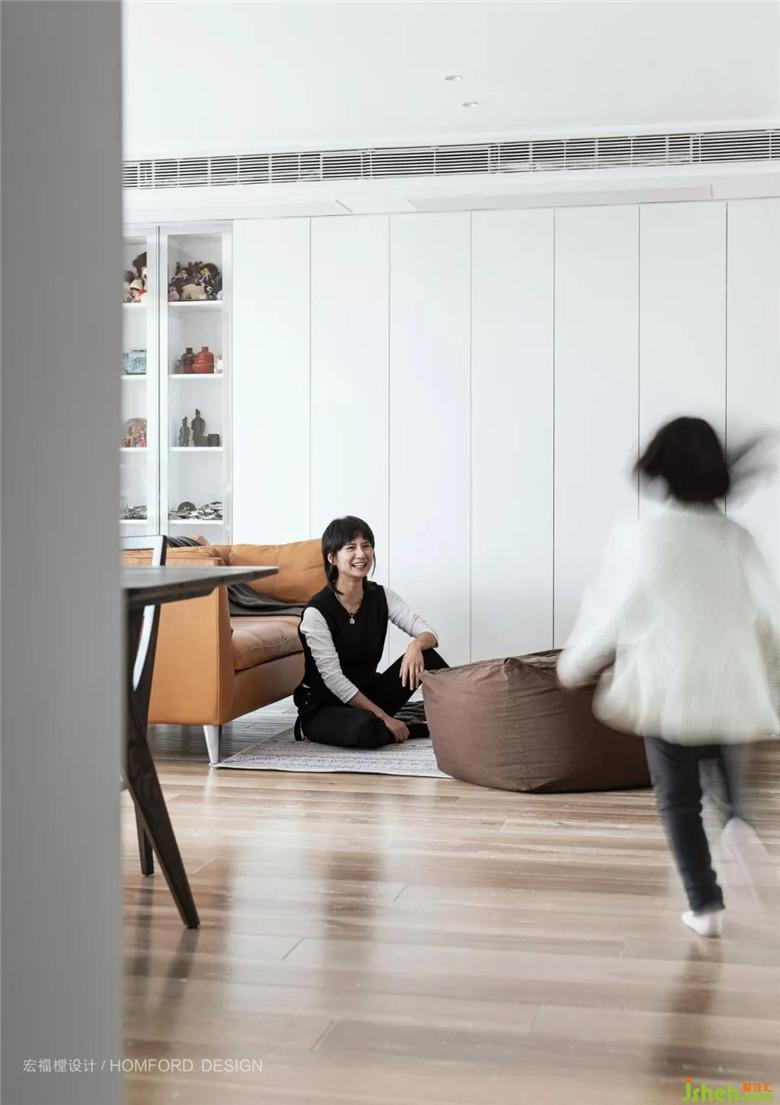 本案屋主是自由職業(yè)會(huì)不定期出國(guó)旅行,除此之外大部分時(shí)間在家就能完成工作。所以,他提出的需求是希望這個(gè)空間能承載的不僅是一家三口的生活日常還有放松舒適的工作環(huán)境。