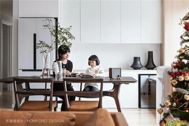 通透的空間布局使廚房與客餐廳連為一體,一家三口在這里享受美食讓一日三餐也變得越發(fā)可口。