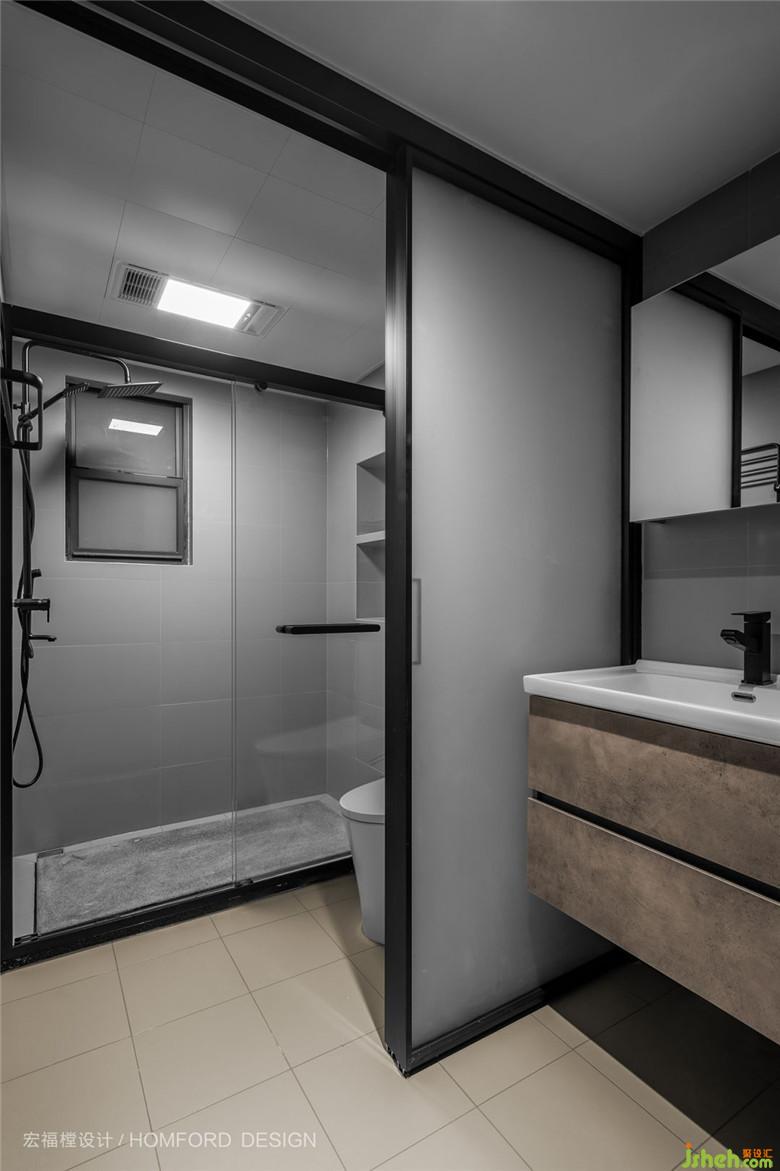 原衛(wèi)生間面積局促,我們選擇無(wú)地軌玻璃門(mén)隔斷替代常規(guī)隔墻。洗漱、如廁、沐浴功能在這4㎡的空間同時(shí)進(jìn)行也不顯擁擠。小小的空間集空間美學(xué)、生活美學(xué)于一體。