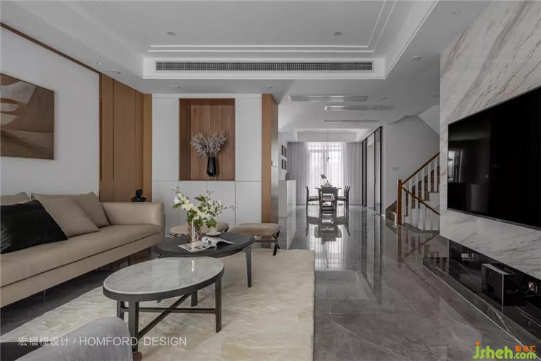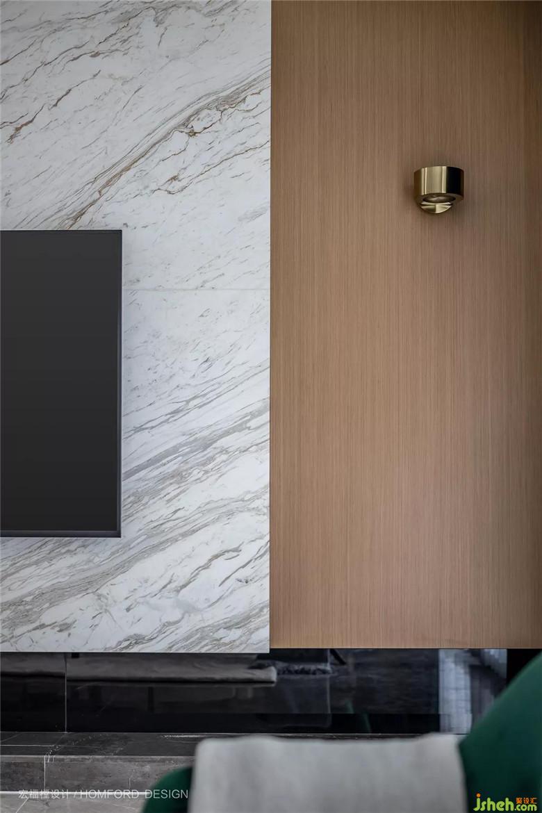 電視墻選用大理石材,質(zhì)感沉穩(wěn),與空間相呼應(yīng)。且簡潔亦打掃。