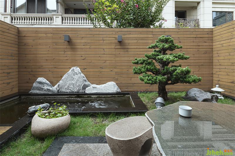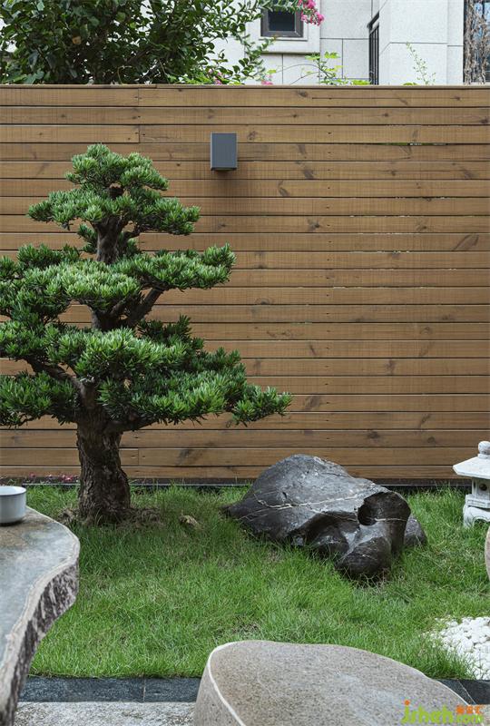 鋼琴區(qū)右側(cè)是一樓花園,因其面積不大在別墅設(shè)計(jì)部分進(jìn)行簡(jiǎn)化,用日式園林造景陳設(shè)來(lái)表達(dá)簡(jiǎn)約的意境。方寸間,盡顯山水之美,營(yíng)造一個(gè)慢生活的氛圍。