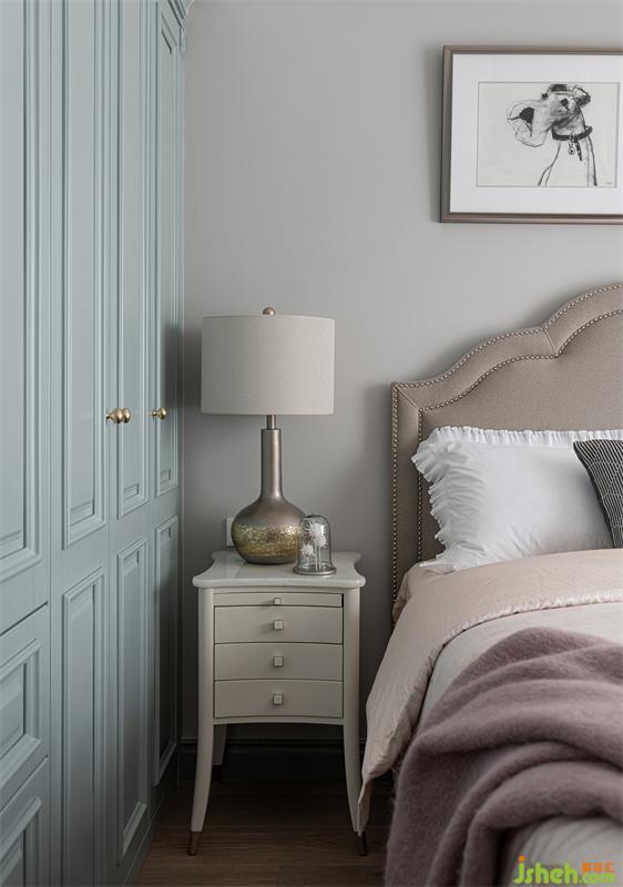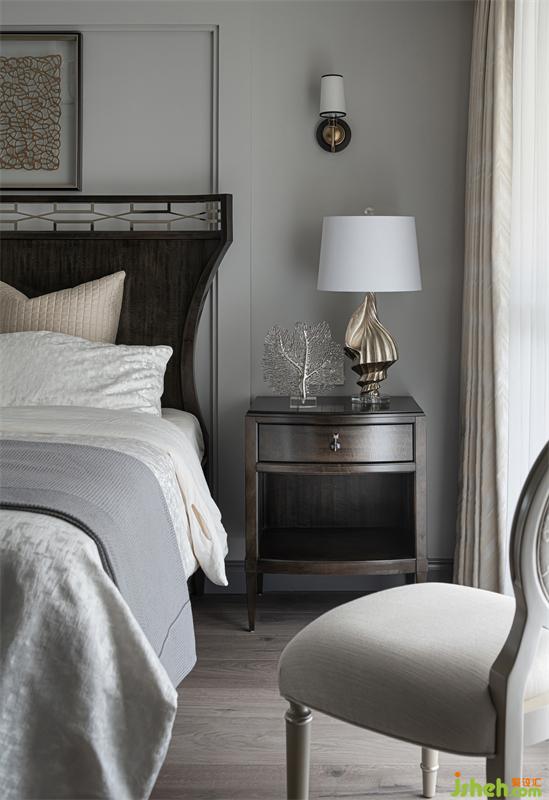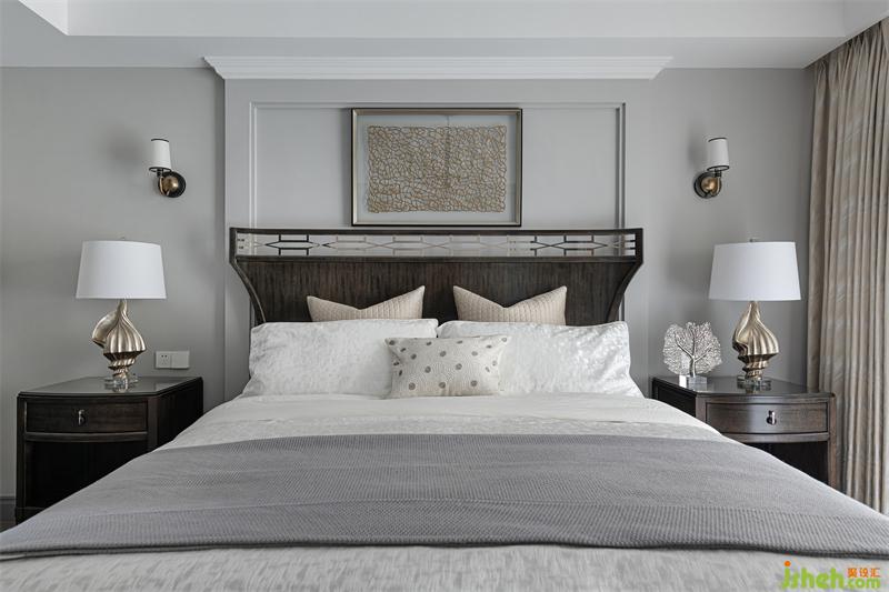 灰色、沙色、蜂蜜色,營(yíng)造出溫馨舒適的居住氛圍感。床頭背景處采用黃金比例進(jìn)行分割,用石膏線條制造框景將視線聚焦,結(jié)合墻面立體造型以突出空間韻律感。床體的選擇上,我們摒棄了傳統(tǒng)的古典美式選擇了帶中式韻味的新派美式家具,美式的大氣與中式的沉穩(wěn)完美融合。