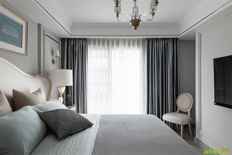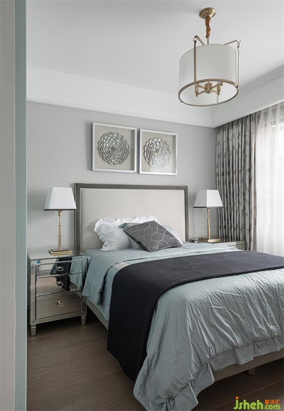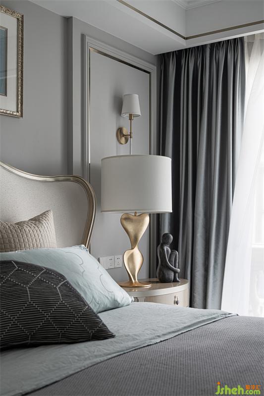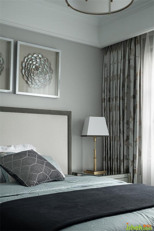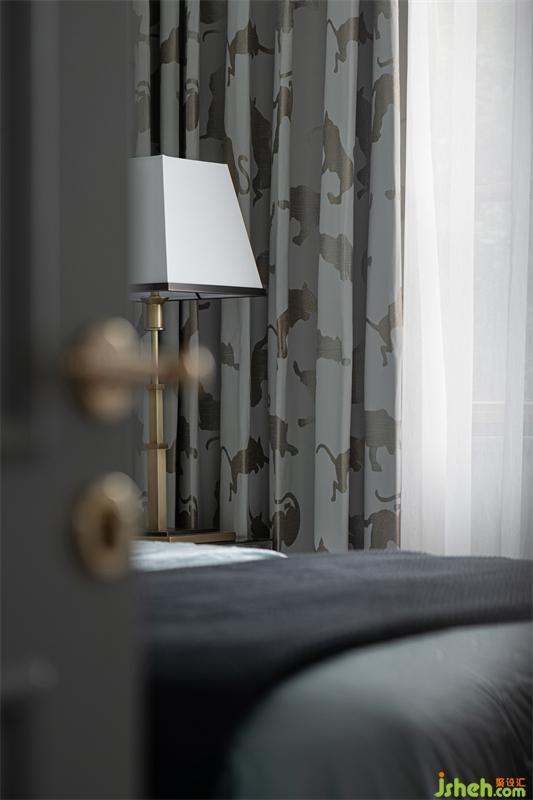 三樓的兒童房為兒子居住,臥室獨立多功能房并為一體空間作為學(xué)習(xí)區(qū)使用。我們選用灰色、水藍(lán)色、淺松石色,并結(jié)合小豹子圖案的窗簾,讓他可以在清爽宜人的室內(nèi)放空自我,感悟單純。
