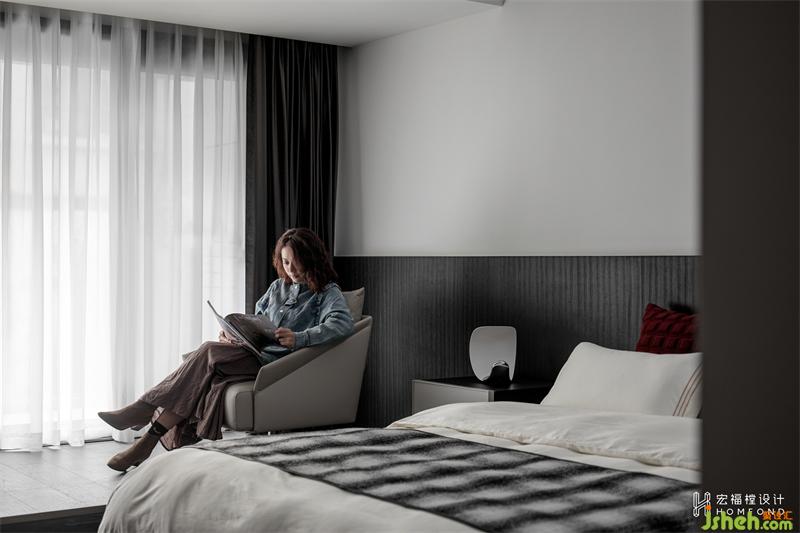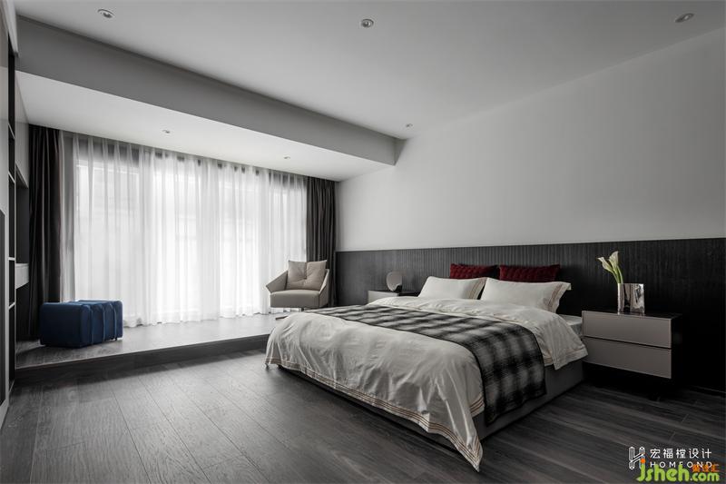 將原始平臺區(qū)域納入主臥空間一同使用,窗戶改造為整面落地窗,讓更多的光線照射進(jìn)來。木質(zhì)地板與飾面擔(dān)當(dāng)主調(diào),烘托出自然洗練的氣質(zhì)。以優(yōu)雅、沉浸的色調(diào)將復(fù)雜紛擾拒之門外。