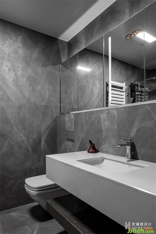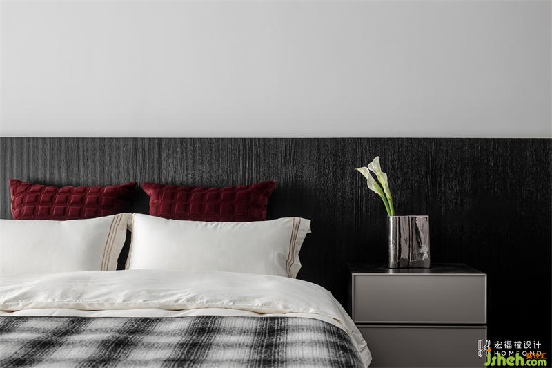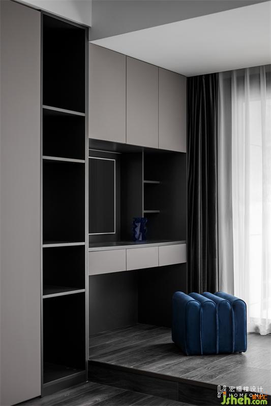 除了營造愜意舒適的氣氛,主臥的功能性也十分的完善。擴(kuò)大之后的空間擁有一排4760mm長度的衣柜,并連接1290mm的梳妝臺。床與主衛(wèi)之間設(shè)計為2930mmx1050mm的L型衣帽間,完美滿足四季更替的衣服、包包及生活用品的超強收納。