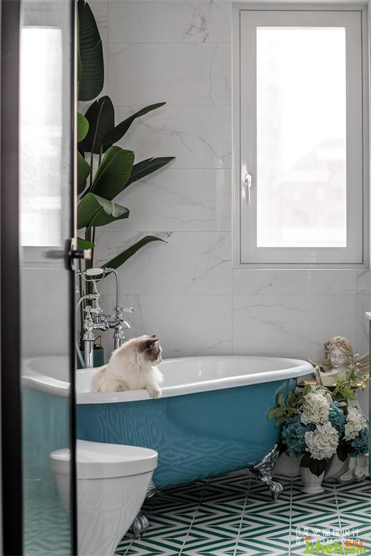 女主人最喜愛(ài)的是主臥衛(wèi)生間,從兩年前看到貓腳浴缸便念念不忘。居所開(kāi)始動(dòng)工時(shí),施工人員考慮到尺寸問(wèn)題,建議修改并放棄浴缸。抱著希望盡量把屋主喜愛(ài)之物留下的執(zhí)念,被設(shè)計(jì)師成功勸阻?,F(xiàn)在,這里成了一道美麗別致的風(fēng)景線,將時(shí)光放慢,獨(dú)處的泡澡狀態(tài)非常舒服。