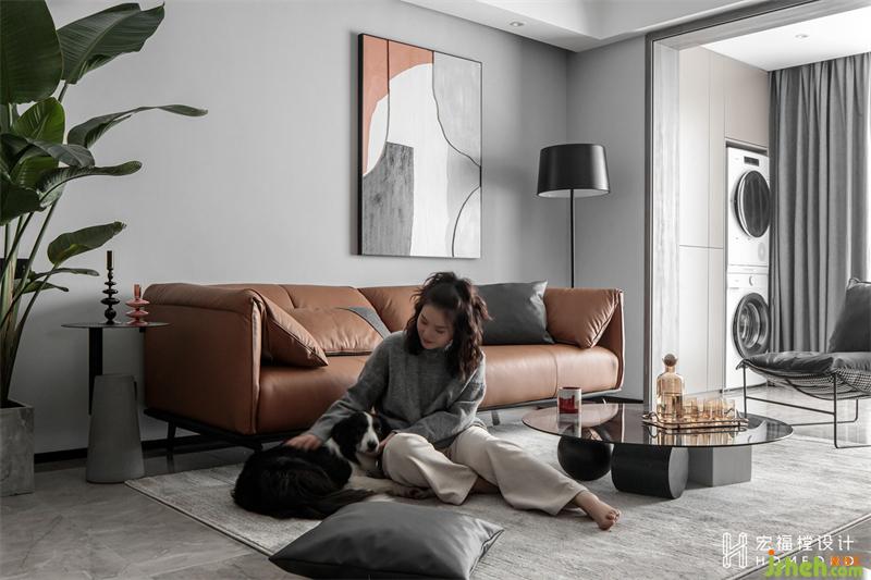 皮革棕傳遞雅致、沉靜的格調(diào),流暢的線條感從地面延伸到天花板,通過精心合理布置物品及其所處方位,呈現(xiàn)出一種帶著從屬意味的和諧氛圍。不需要上班的時刻,悠閑席坐于地毯上,陪三月一起玩耍、休息,與愜意舒適的空間氛圍完全融合。