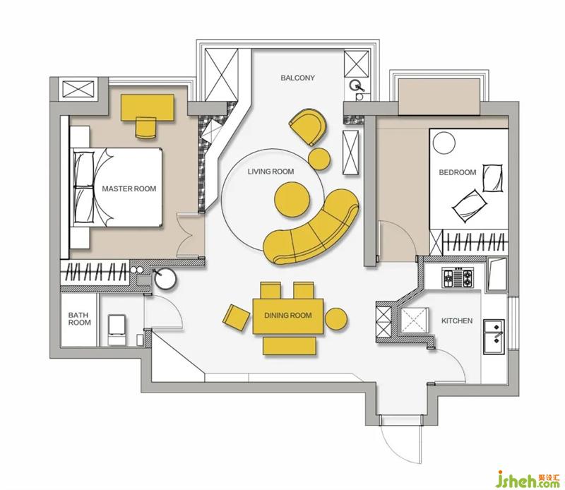 ? 改變原始主臥門洞位置,避免與衛(wèi)生間相鄰,并將其位置改造為衛(wèi)生間干區(qū)部分
