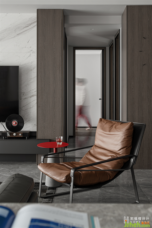 客廳的陳設(shè)打破尋常。誰也想不到,郎窯紅邊幾用作空間點綴,這個顏色是多少設(shè)計師避之不及的。出乎意料的是,郎窯紅配鐵銹棕,烘托出別樣出挑的輕奢氛圍。