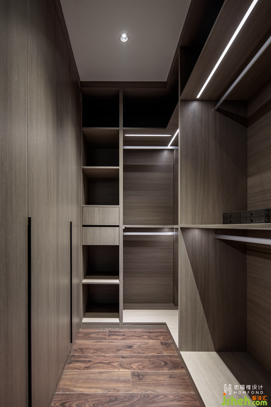 原始給予衣帽間的面積不多,在有限的考慮下,采用了一半封閉一半開放的形式呈現(xiàn),在使用時,不會感覺狹窄和擁擠。