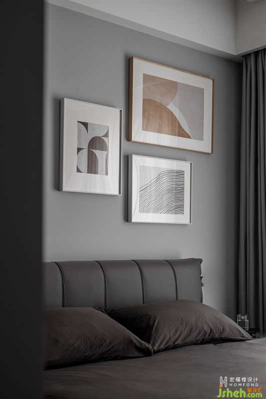次臥為親友偶爾探訪小憩,延續(xù)主臥基調(diào),加入冰川灰與青銅色,錯落有致的灰色讓空間素雅低調(diào)的同時又富有成熟的生活格調(diào)。