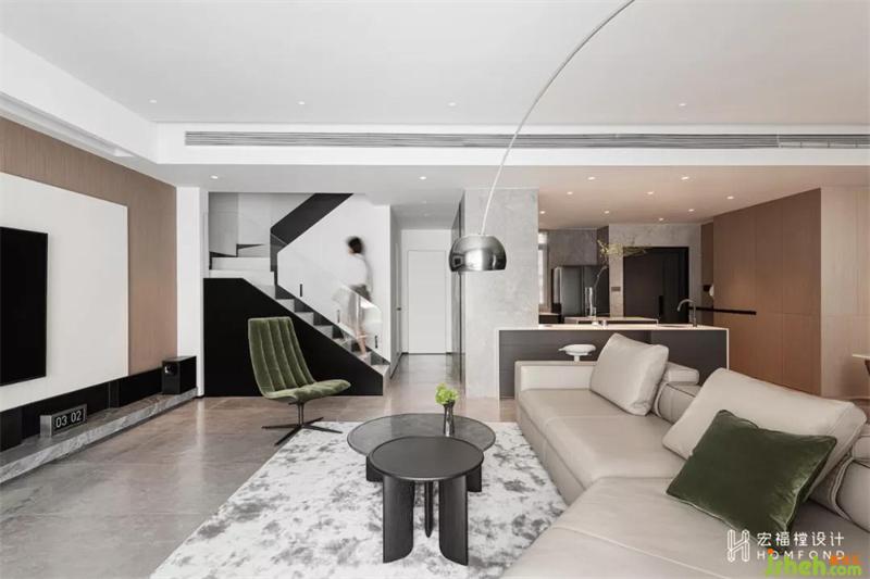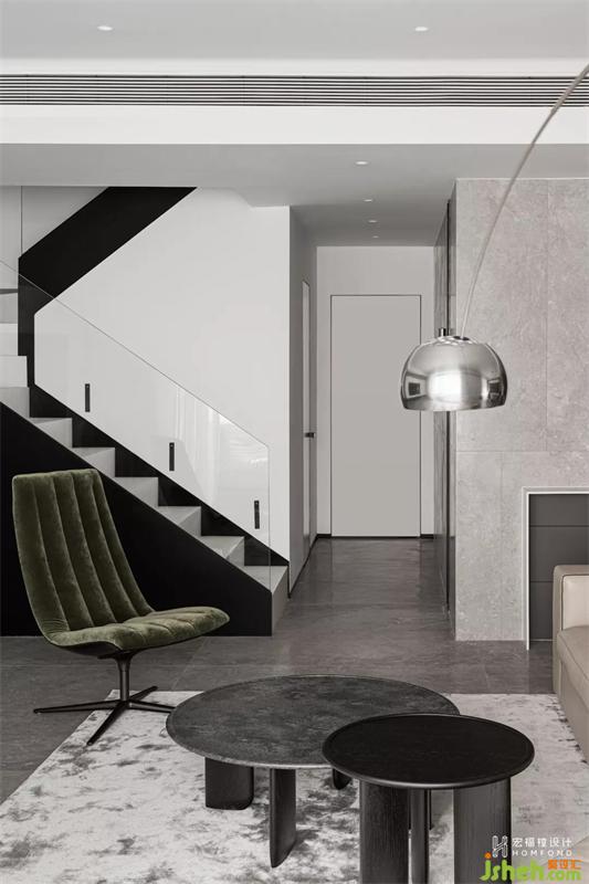 在形成秩序的同時,也賦予空間絕對的廣闊性?,F(xiàn)代與生活經(jīng)過融合思考,藝術(shù)也囊括進入其中,空間中垂直的對稱、縱深的弧線,形成屬于這間居所的獨特語言。