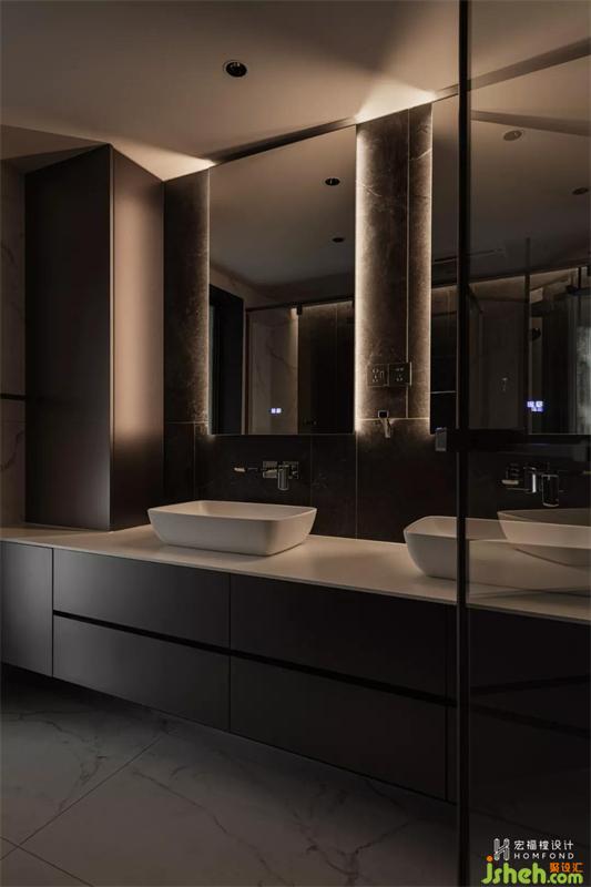 如何通過設計讓居住者的日常生活毫不費力,是一個非常值得深思和考慮的重要問題。原始主衛(wèi)有足夠的空間使用,但我們根據對屋主的了解,只提取最重要的生活需求。在進行干濕三分離后,直接將其一分為二,改造為從另一側進入的次衛(wèi)空間,方便孩子們使用。