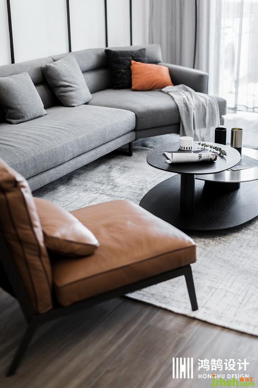 設計公司利用灰色布藝沙發(fā)與黃色皮質(zhì)沙發(fā)相互映襯,互相點綴,給人一種暖意融融的家庭氛圍