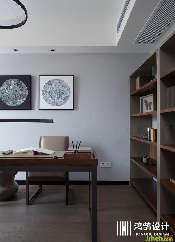 書房大量木質(zhì)材料的使用能夠讓空間看上去舒適又大氣沉穩(wěn)。