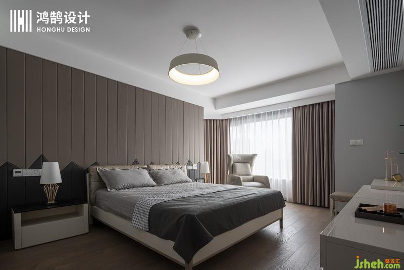 臥室實(shí)木地板搭配簡單純凈的床品,設(shè)計公司為主人營造了一個寧靜平和的就寢環(huán)境。