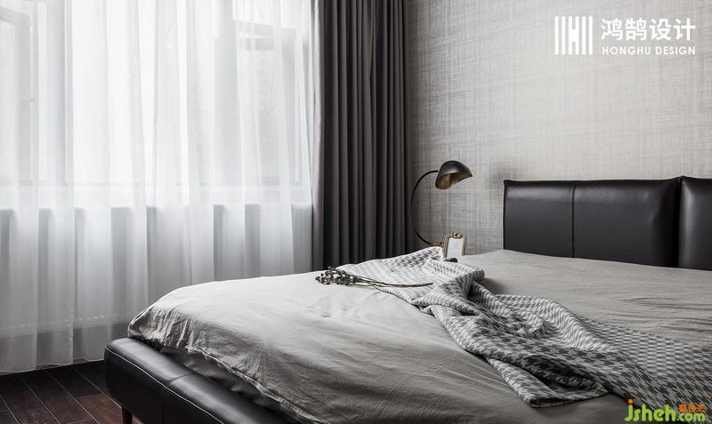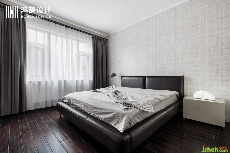 臥室風格也是以極簡為主,與其他空間不同的是,臥室主打深色系,給人一種安靜,理性的空間氛圍。