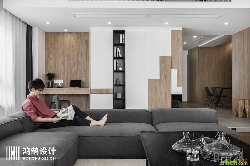 大面積的儲(chǔ)物收納柜,滿足了儲(chǔ)物的需求,因此有了一個(gè)整潔干凈的家,灰色的布藝沙發(fā),躺在上面舒服到讓人無(wú)法自拔。