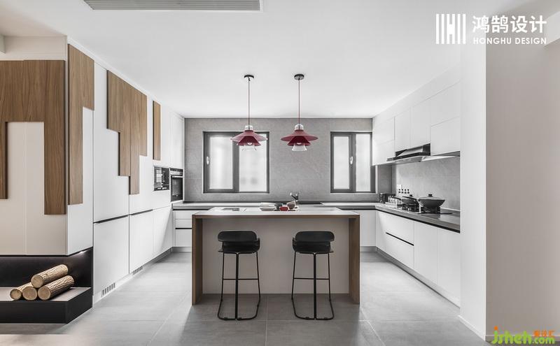 這套案子裝飾表現(xiàn)很簡(jiǎn)單,室內(nèi)設(shè)計(jì)師做了很多的減法,希望通過(guò)功能去做裝飾,不去做專門的造型背景墻,你看到這一面的造型它其實(shí)是一個(gè)非常實(shí)用的雙面的柜子,這就是我們現(xiàn)在一直表達(dá)的一種設(shè)計(jì)方式:把硬裝當(dāng)做軟裝來(lái)做。