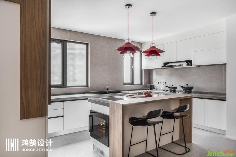 木質(zhì)的小吧臺(tái)簡(jiǎn)潔而雅致搭配紅色的吊燈,自然又溫馨。