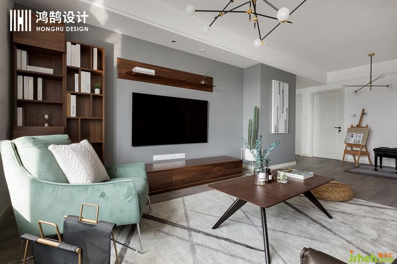 為了使得墻面比較對(duì)稱,室內(nèi)設(shè)計(jì)師在設(shè)計(jì)電視機(jī)背景墻面時(shí),將書(shū)柜設(shè)置在左邊,與右邊凸出的柜體墻面做一個(gè)平衡,而且還可以將視線聚焦在電視機(jī)上,美觀與實(shí)用的完美結(jié)合。