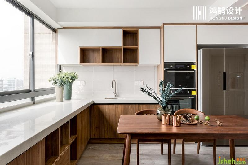 本案最大的亮點(diǎn)在于餐廚空間,空間,采光,實(shí)用性來講都是絕妙的,這才是生活的樣子吧。北美風(fēng)格的胡桃木餐桌,讓整個(gè)生活的情趣勾勒的完美無瑕。一杯牛奶,一片面包,一縷陽光,開始新的每一天。