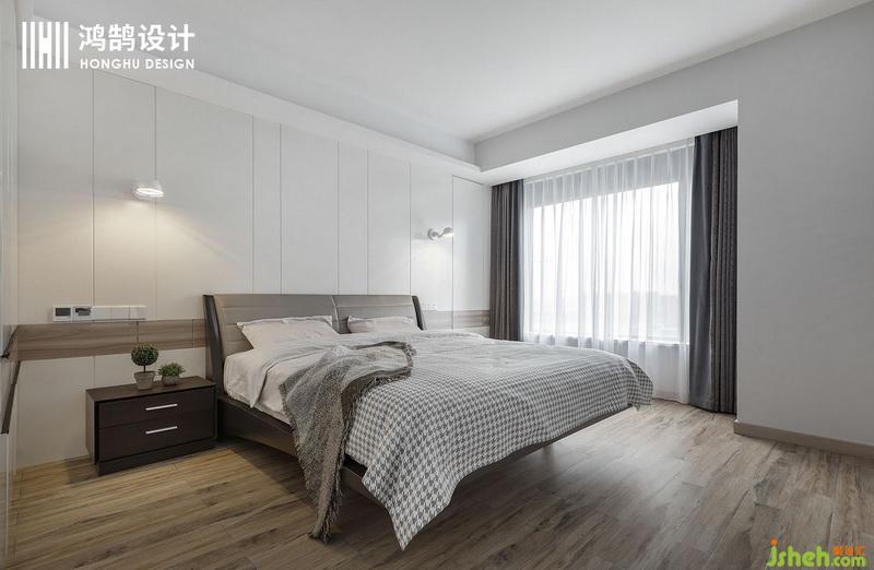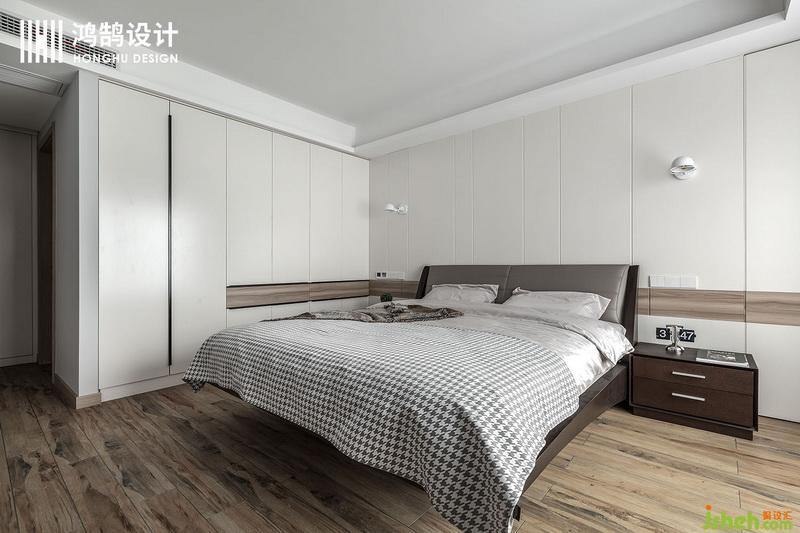 臥室的背景墻和柜體墻面一致,風(fēng)格統(tǒng)一之外,也讓空間變得非常大氣,整面的木飾面讓臥室空間非常溫和。